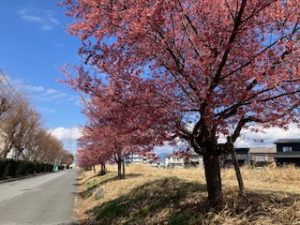 散歩コースにあるオカメザクラは現在見頃を迎え、
