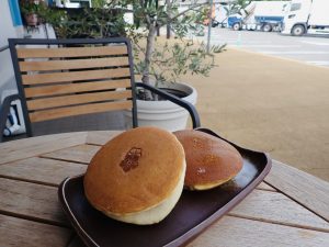 曇って少々肌寒い時にはどら焼きを、暑さに立ち向かう時には桔梗信玄どらいすと、「どら焼き二刀流」で、